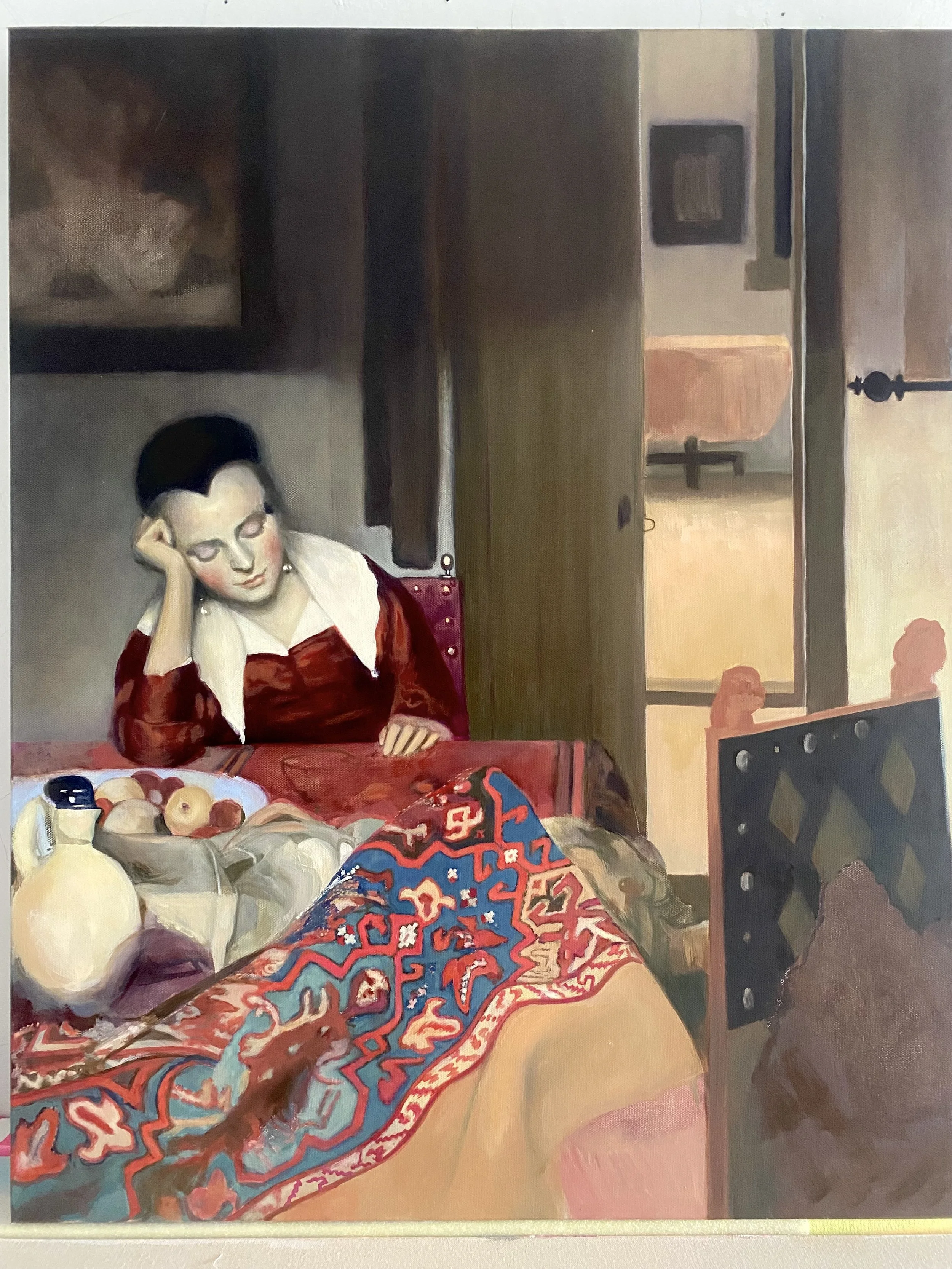 HEALER (PAINTED AT THE MET, AFTER VERMEER’S SLEEPING MAID), OIL ON CANVAS, 2025