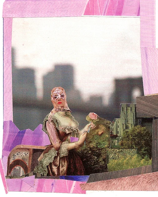 As I work out the images, I look for spaces, alternatives to experiencing given regimes of architectural competition, of gendered space. I recombine fragments to break apart spatial hierarchies and give a sense of scale for the landscape of lived relations that are not normally visible. As I delve into details from these mannered works, I explore forms of energy transmission in our analogue reality.