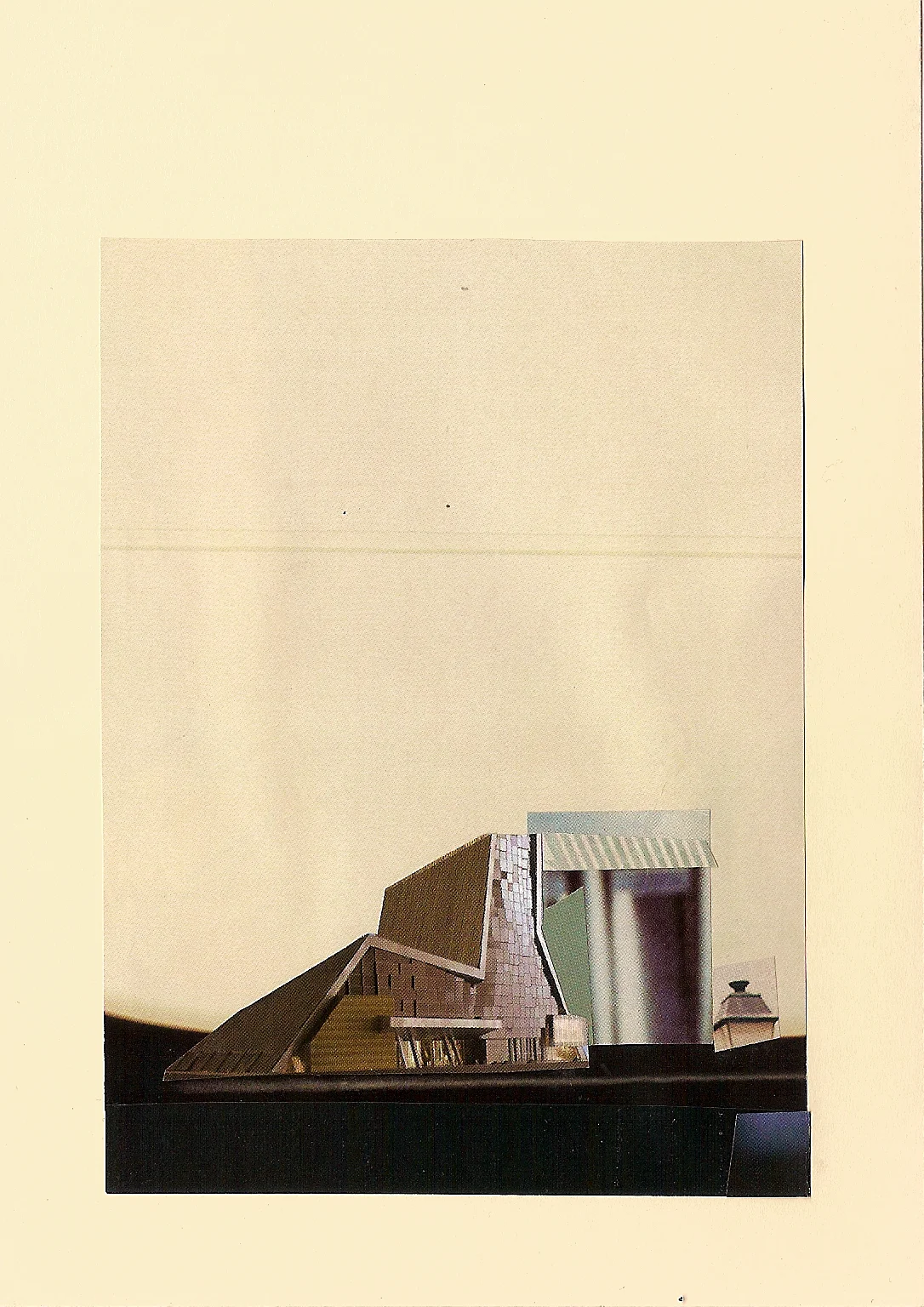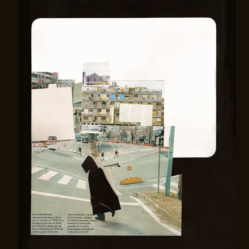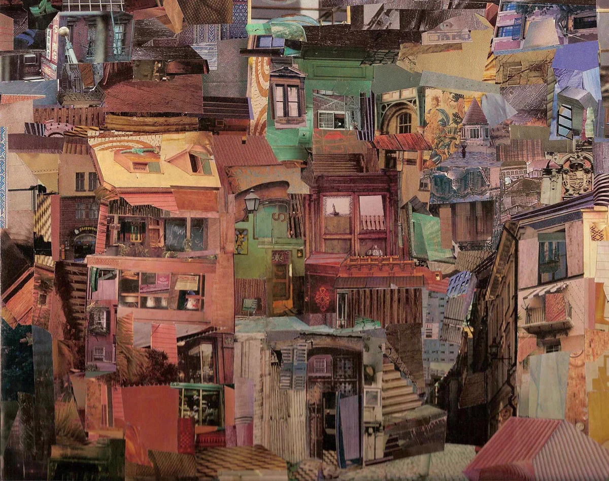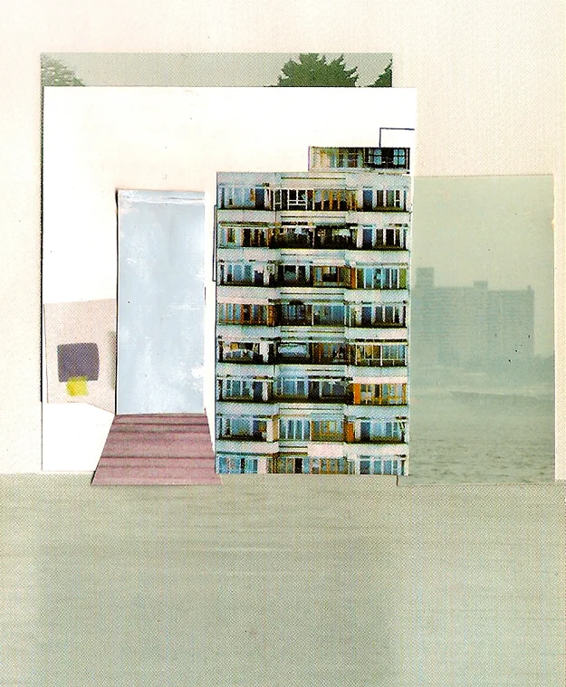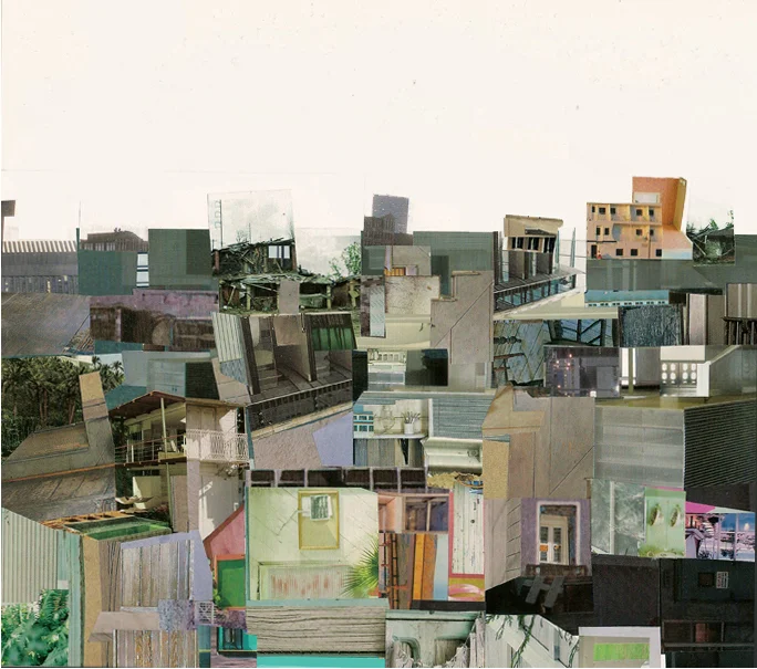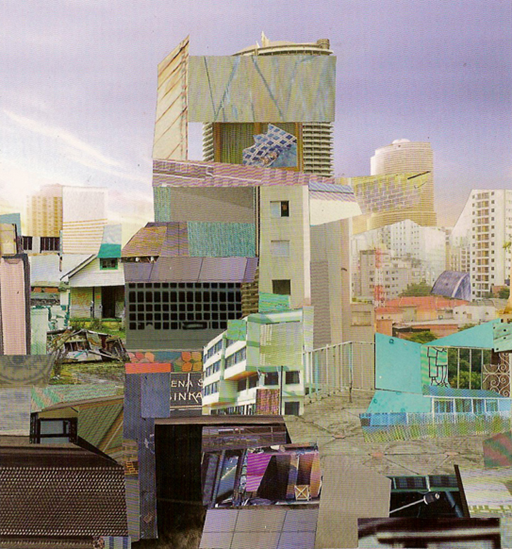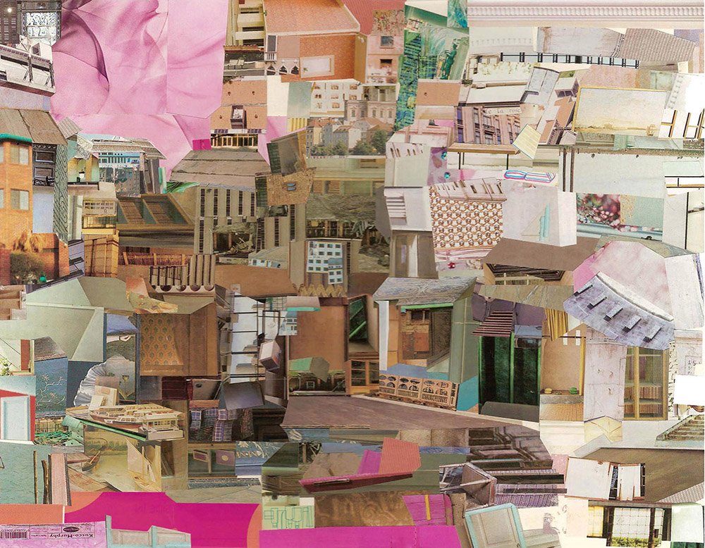 When I collage, I experience the square inch and a sense of ever-expansion with it. A myriad variant of possible pathways open in an inside-out process, where one primary structure, informs, leads and supports the next. Architectural elements request from adjacent elements to convey space. I am interested in scale shifts and how some times one can be too big or too small for the room in a map of what the net may look like. Inverse to being a cloud or poetic vacuum, the web holds conglomerates of information on very close quarters, where a multiplicity of compartmentalized realities co-exist well beyond the grid and linear rationale.